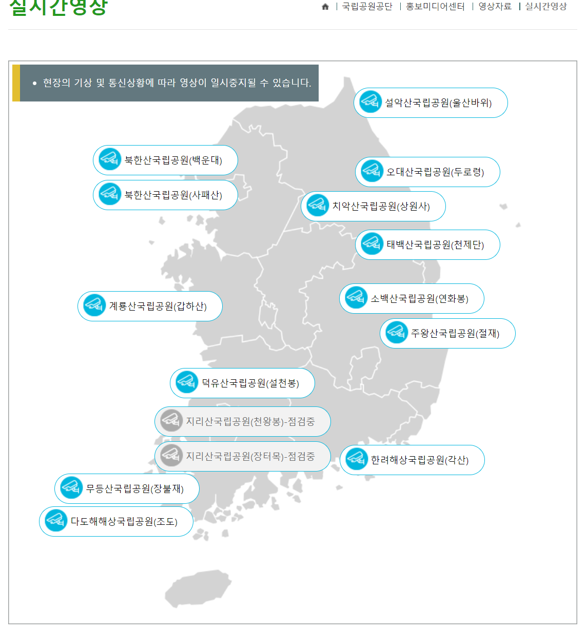 내가 위와 같은 상황으로 인해 국립공원을 방문해야 한다면 꼭 국립공원 실시간 cctv를 통해 확인 후 출발하시기 바랍니다.