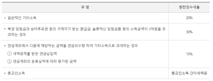 기타소득은 원천징수 기타소득세율이 20%입니다.
