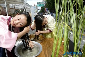액운을 쫓는 창포물은 창포가 무성한 물가에서 물맞이 놀이를 하거나 창포 이슬을 받아 그 물로 머리를 감는 것입니다. 머릿결이 좋아지고 윤기가 있어진다고 하였습니다.
