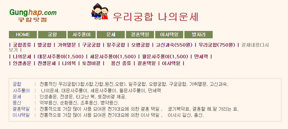 해당 사이트는 궁합 관련 전문 사이트로 많은 방법을 통해 궁합을 확인해볼 수 있습니다. 물론 유료 서비스도 있으나 비용이 써있지 않는 경우 무료로 생각하시면 되는데요, 먼저 해당 사이트로 이동해보시겠습니다.