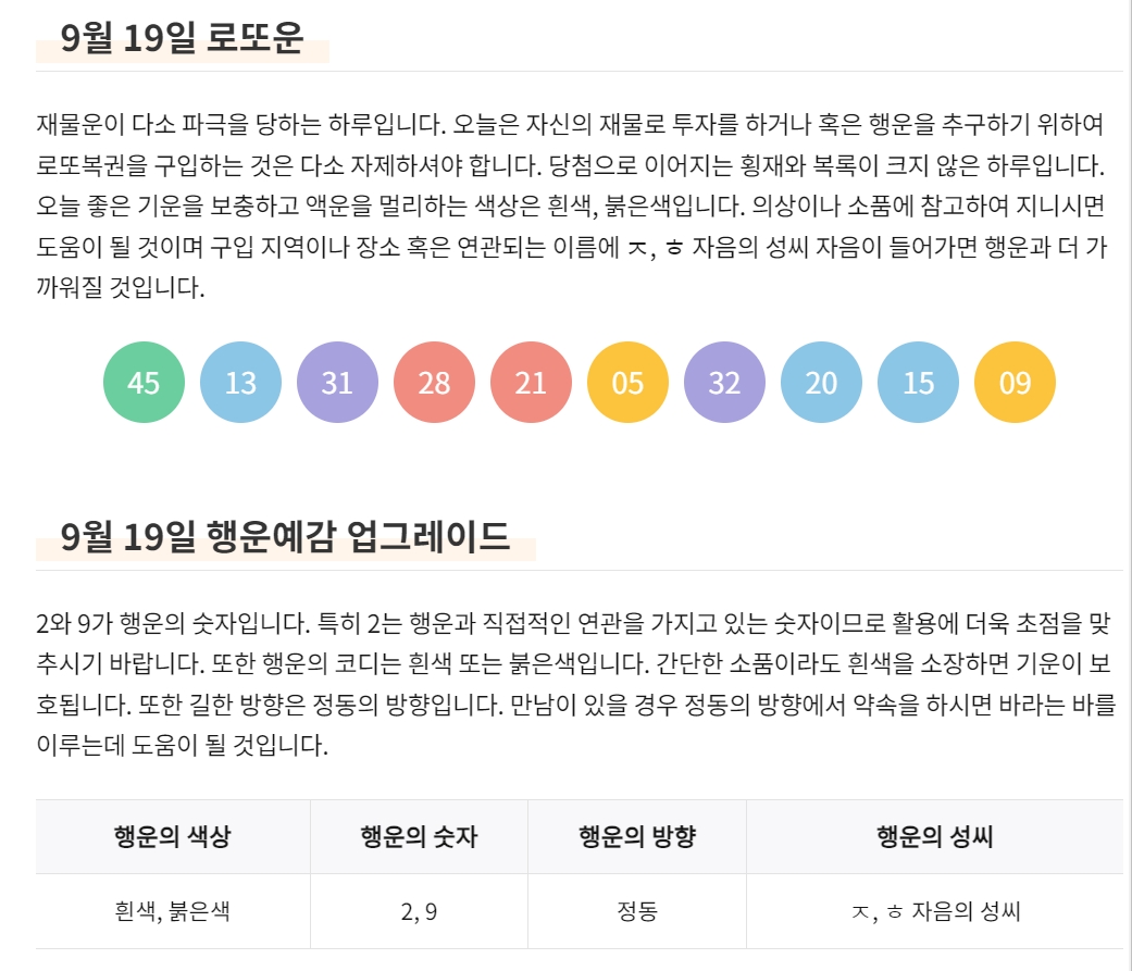 저도 가끔 이용해보고 있는데요, 로또 운을 알려주는 것도 참 재미있습니다.