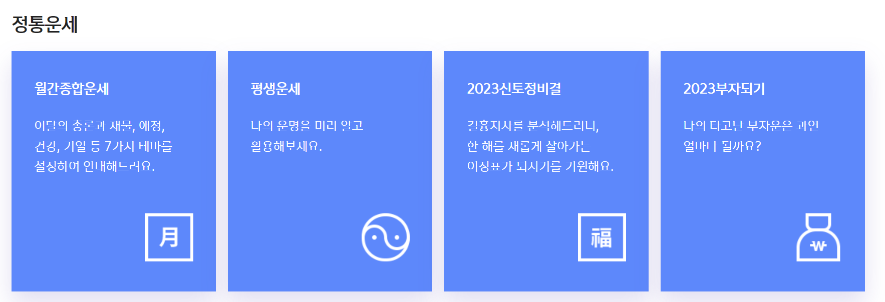 재미로 한번씩 해보는 사주풀이에 많은 돈을 쓰기는 어려울 수도 있기 때문에 오늘 알려드릴 사이트는 모두 무료로 확인해볼 수 있다는 장점이 있습니다.