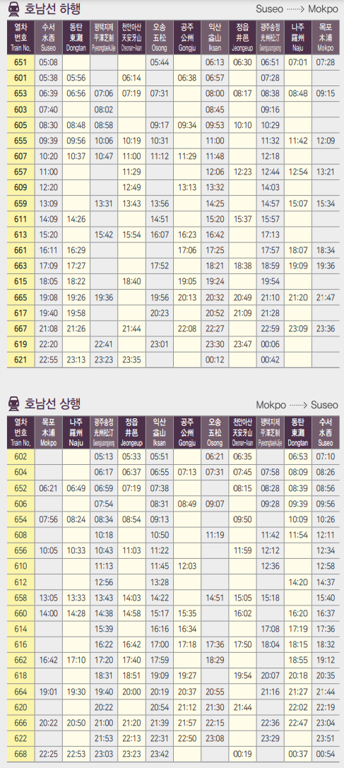 호남선 상행 하행 SRT 시간표