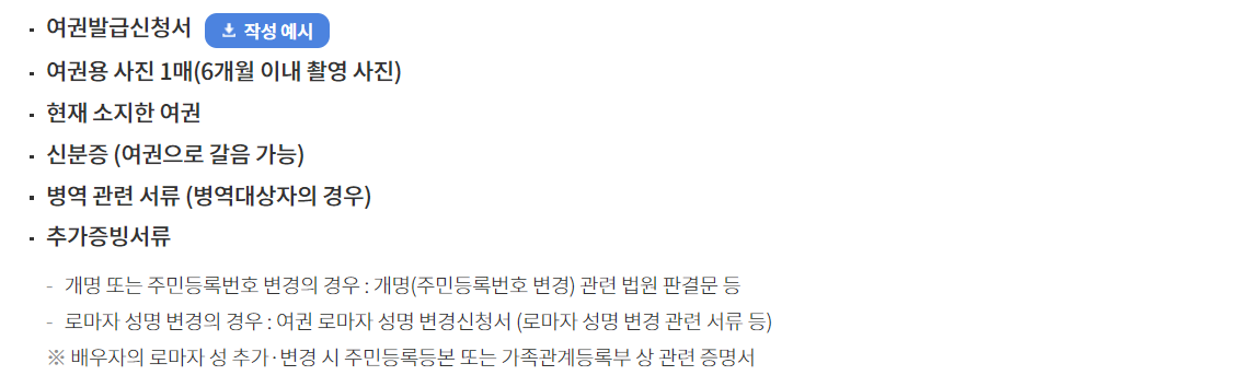 여권 정보 중 철자를 잘못 썼거나 오타가 있는 경우 그리고 개명을 했을 경우에는 아래와 같은 준비물 등이 필요합니다.