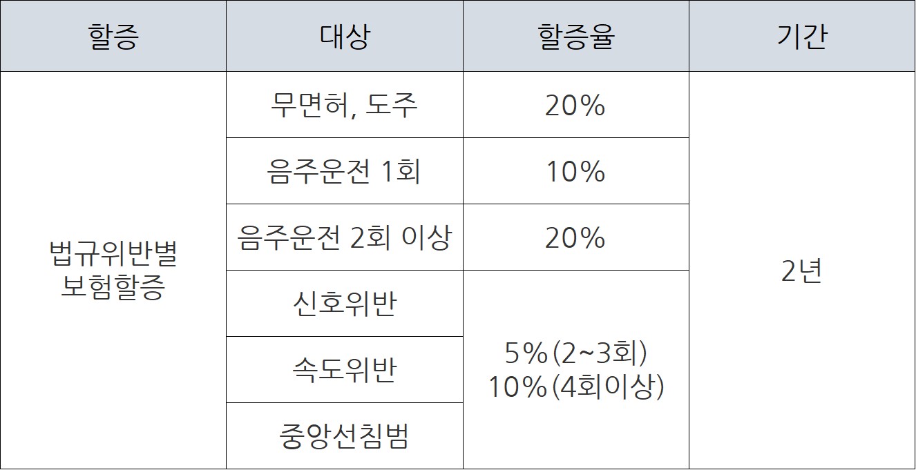 그도 그럴 것이 자기 부담금이 할증률로 통해 올라가기 때문인데요 아래 표를 참고해 보시기 바랍니다.