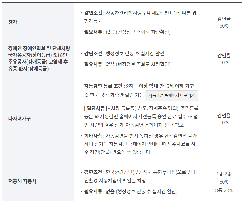 어떤 주차장이든 50% 할인 감면을 받을 수 있기 때문에 내가 할인 받을 수 있는 요건에 해당하는지 확인해보시기 바랍니다.