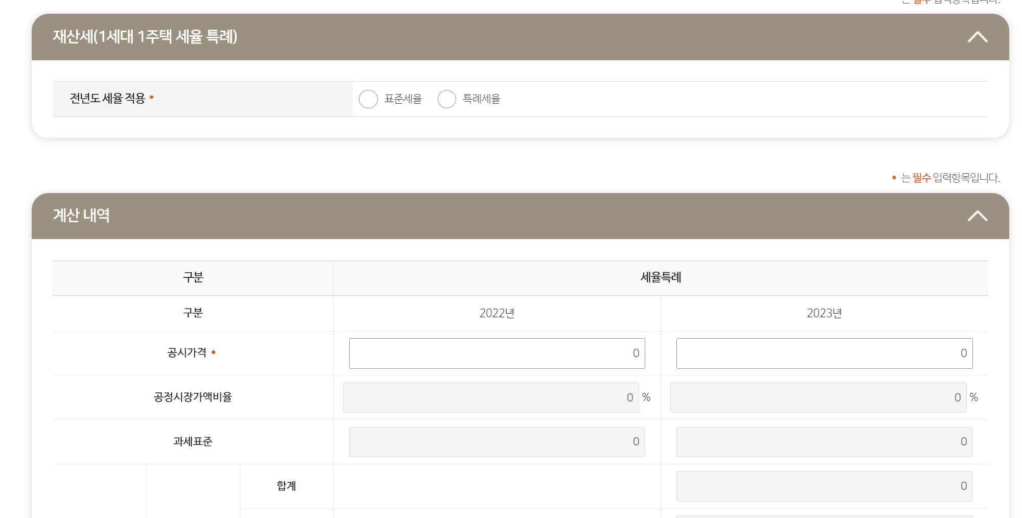1세대 1주택의 경우 세율 적용을 특례세율로 적용하시어 계산하시면 됩니다. 지난해 공시가격과 올해 공시가격을 모두 입력하시어 재산세를 간편하게 계산해보시기 바랍니다.
