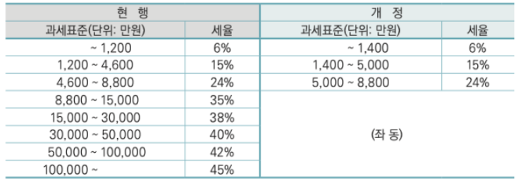 총 8개 구간으로 6%의 세율부터 최대 10억원을 넘어갈 경우 45%에 해당하는 세율이 적용됩니다. 소득이 많으면 많을 수록 적용되는 세율이 높아지는 것 입니다.