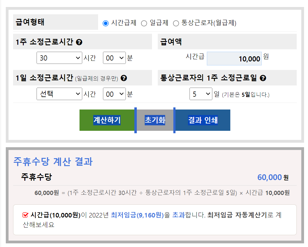 주휴수당 계산기