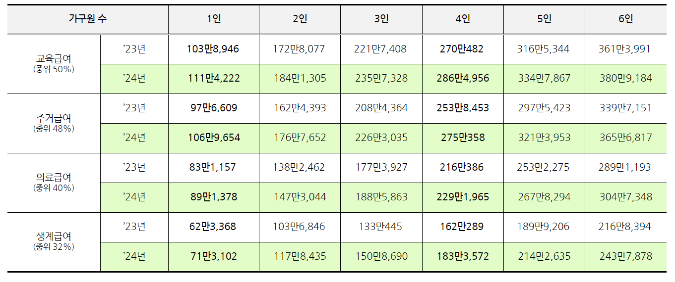 2024 생계급여 인상