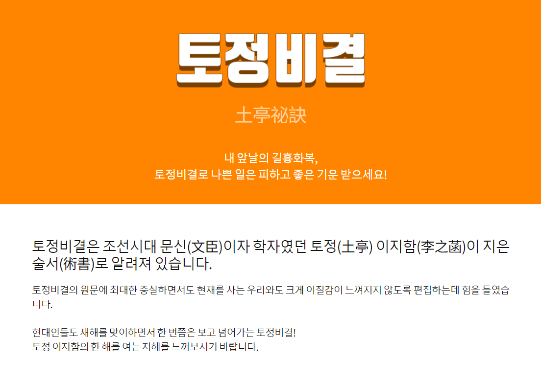 새해를 맞이하여 아직까지 토정비결을 보지 못하신 분들은 이 글을 통해 토정비결을 무료로 확인해보실 수 있습니다.