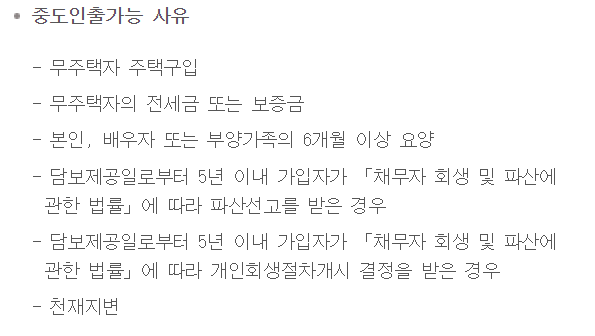 또한 이 퇴직연금의 경우 중간정산이 아래 요건에 따라 가능합니다.